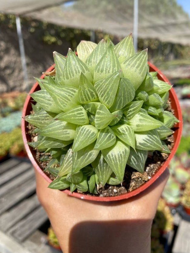 The Haworthia Turgida is a charming succulent with dark green leaves arranged in a tight rosette. Its compact size makes it suitable for small spaces, such as terrariums, desktops, or retail shelves. Thriving in bright, indirect light, this haworthia is an excellent choice for wholesale buyers seeking easy-care plants with a modern aesthetic. Its low water needs and pest-resistant nature ensure long-lasting beauty in any setting.