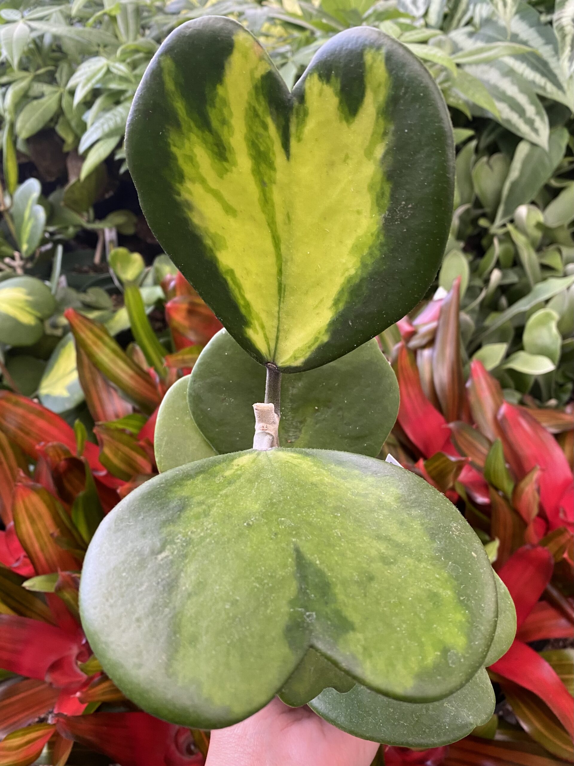 The Hoya Kerrii Vine’s variegated, heart-shaped leaves ignite attraction in indoor settings or at retail green centers. Its glistening foliage offers a delightful color variation, providing visual interest. This high-trending, easy-care vine is perfect for compact spaces and hanging installations.