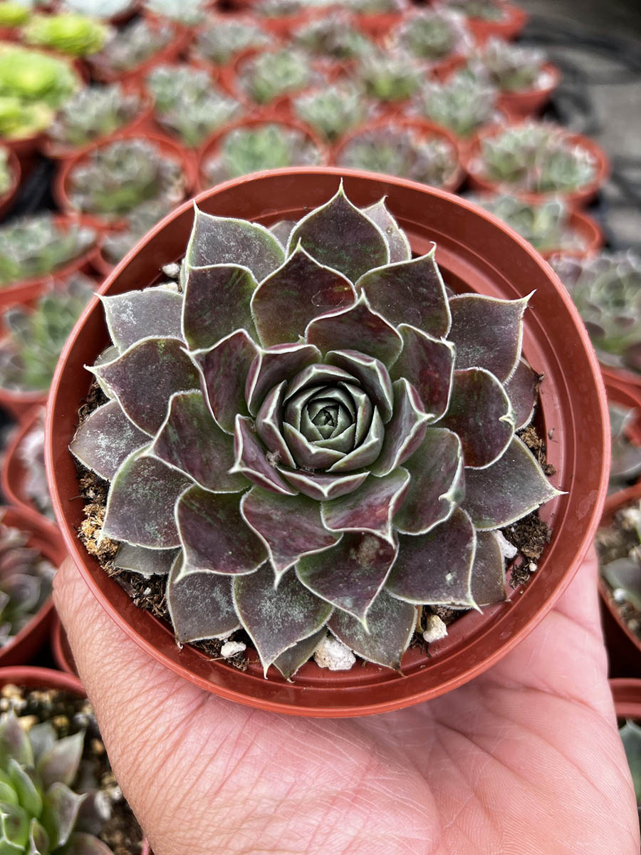The Jovibarba Heuffelii features compact rosettes of succulent leaves in various shades, perfect for adding texture to any arrangement. Suitable for both interiorscapes and retail displays, this plant thrives with minimal care, making it ideal for beginners. Water: 2, Light: 2, General Care: 1