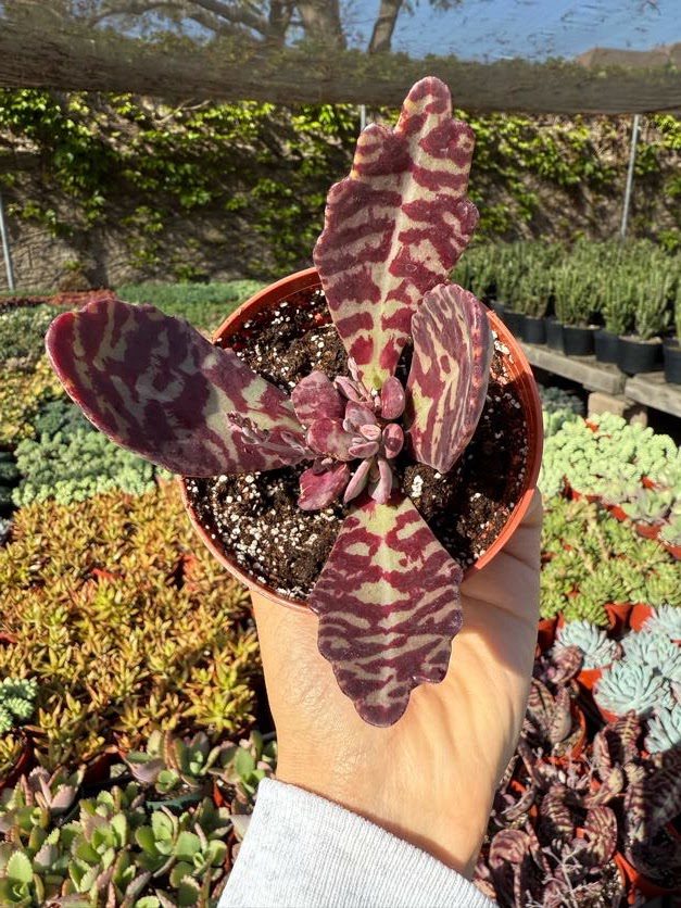 The Kalanchoe Marmorata features striking, textured foliage with unique silver markings. Perfect for retail displays, it attracts attention with its mesmerizing pattern and is easy to care for. Ideal for bright spaces and requires moderate watering. A must-have for plant enthusiasts seeking a visually appealing addition to their collection.