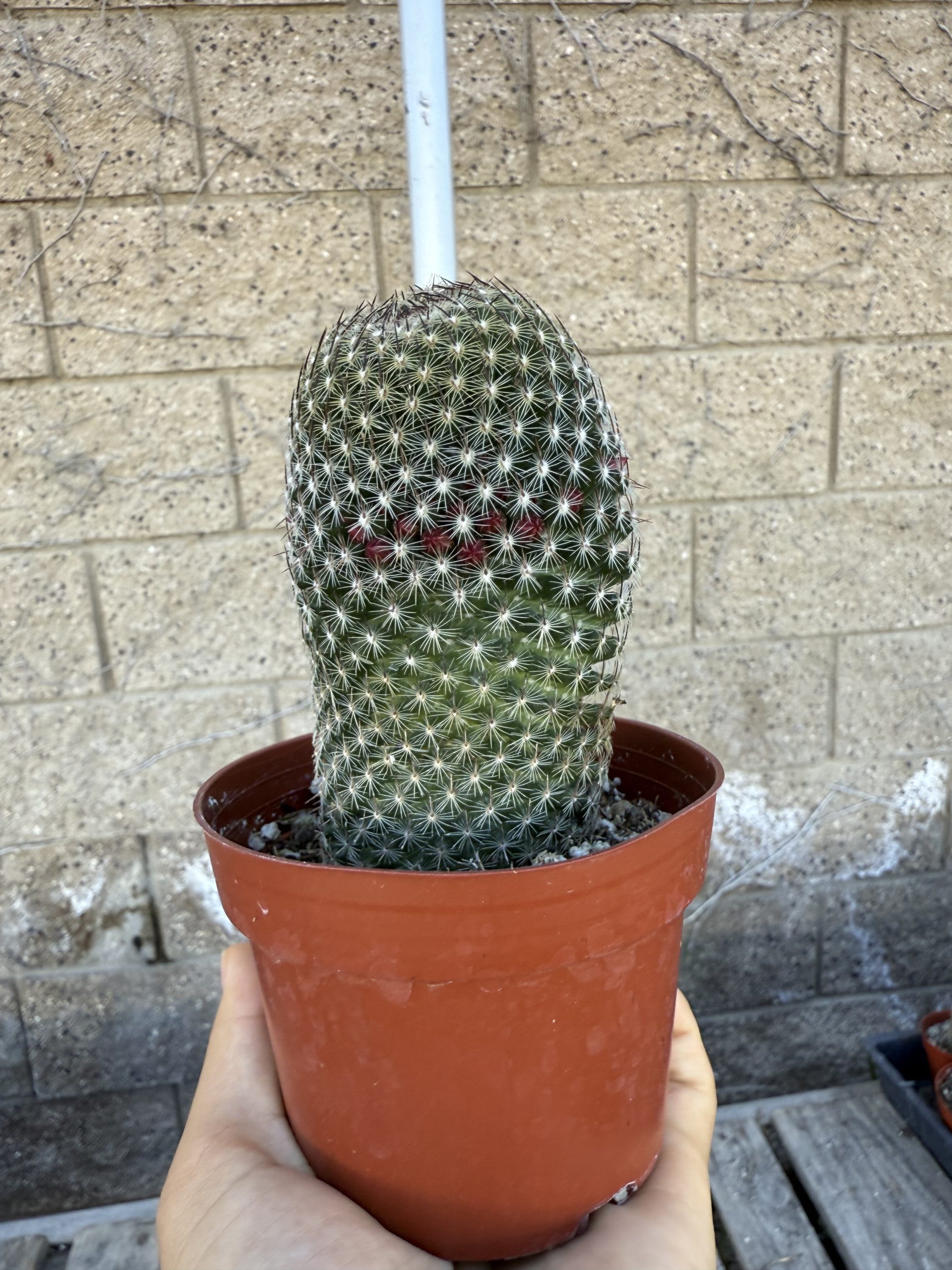 The Mammillaria Matudae is a charming cactus with cylindrical stems adorned with clusters of small white spines. Ideal for adding texture to indoor and outdoor landscapes, this cactus thrives in bright light and requires minimal watering. Perfect for creating desert-themed displays in retail settings.