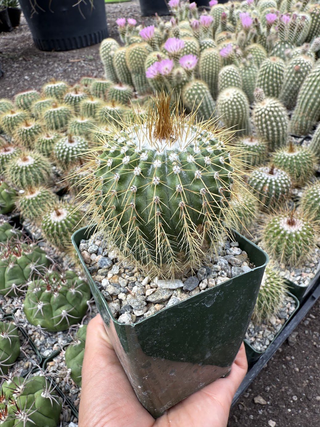 The Notocactus schumannii brevispina showcases short spines and a distinctive spherical form, making it a focal point in interiorscapes and garden center shelves. Its minimal water requirements and preference for bright light make it a resilient choice for those seeking low-maintenance plants. Ideal for adding texture and visual interest to various design schemes, this cactus variety is sure to captivate customers.