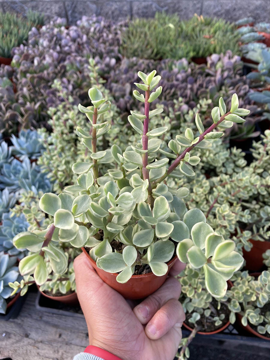 Compact and drought-tolerant, the Portulacaria Afra Variegata showcases striking green and cream-colored leaves, making it a versatile choice for both outdoor and indoor settings. This plant is well-suited for arid climates and sunny locations, adding visual interest to xeriscape designs and retail shelves. Easy to care for and resilient, it is a top pick for busy garden centers.