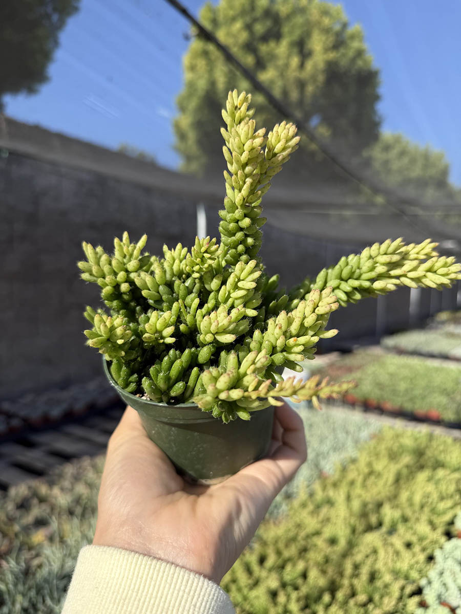 The 4″ Rhipsalis Mesembryanthemoides is a stunning hanging succulent with delicate, cascading stems adorned with vibrant green foliage. Its unique trailing habit makes it perfect for interiorscapes and retail displays, adding a touch of elegance to any setting. With minimal water needs and low light requirements, this succulent is a must-have for both novice plant enthusiasts and seasoned gardeners.