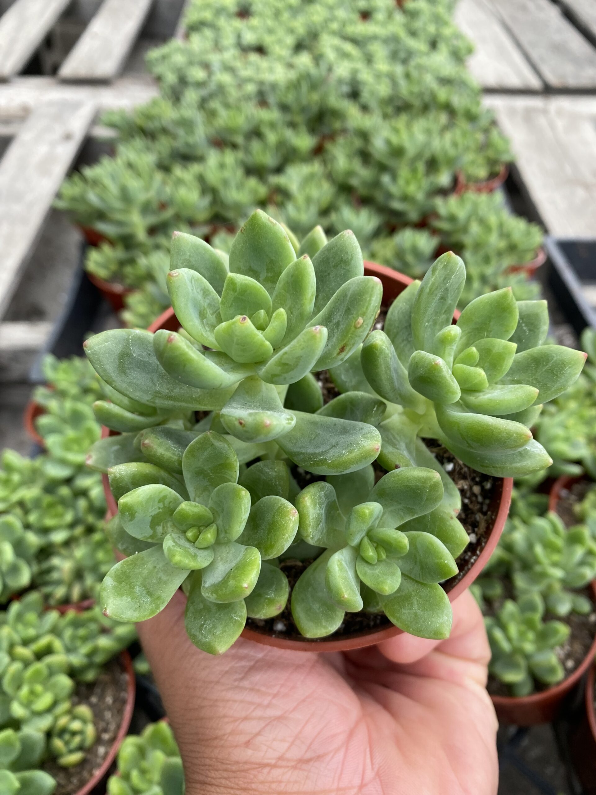 The Sedum Clavantum Green is a versatile plant that thrives in a variety of outdoor settings, from ground cover to vertical gardens. Its green foliage and cascading growth habit create a lush appearance, suitable for both landscapers and retail displays seeking a natural touch. With minimal water needs and moderate light requirements, it is an easy-care option for adding texture and visual interest to any space.