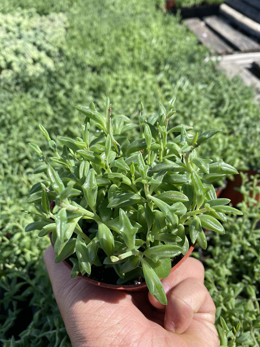 The Senecio String of Dolphins features succulent leaves resembling jumping dolphins, creating a whimsical and eye-catching display. Perfect for retail setups to captivate customers and interiorscapes needing a touch of playfulness. With minimal water and low light requirements, it’s an easy-care choice for beginners.