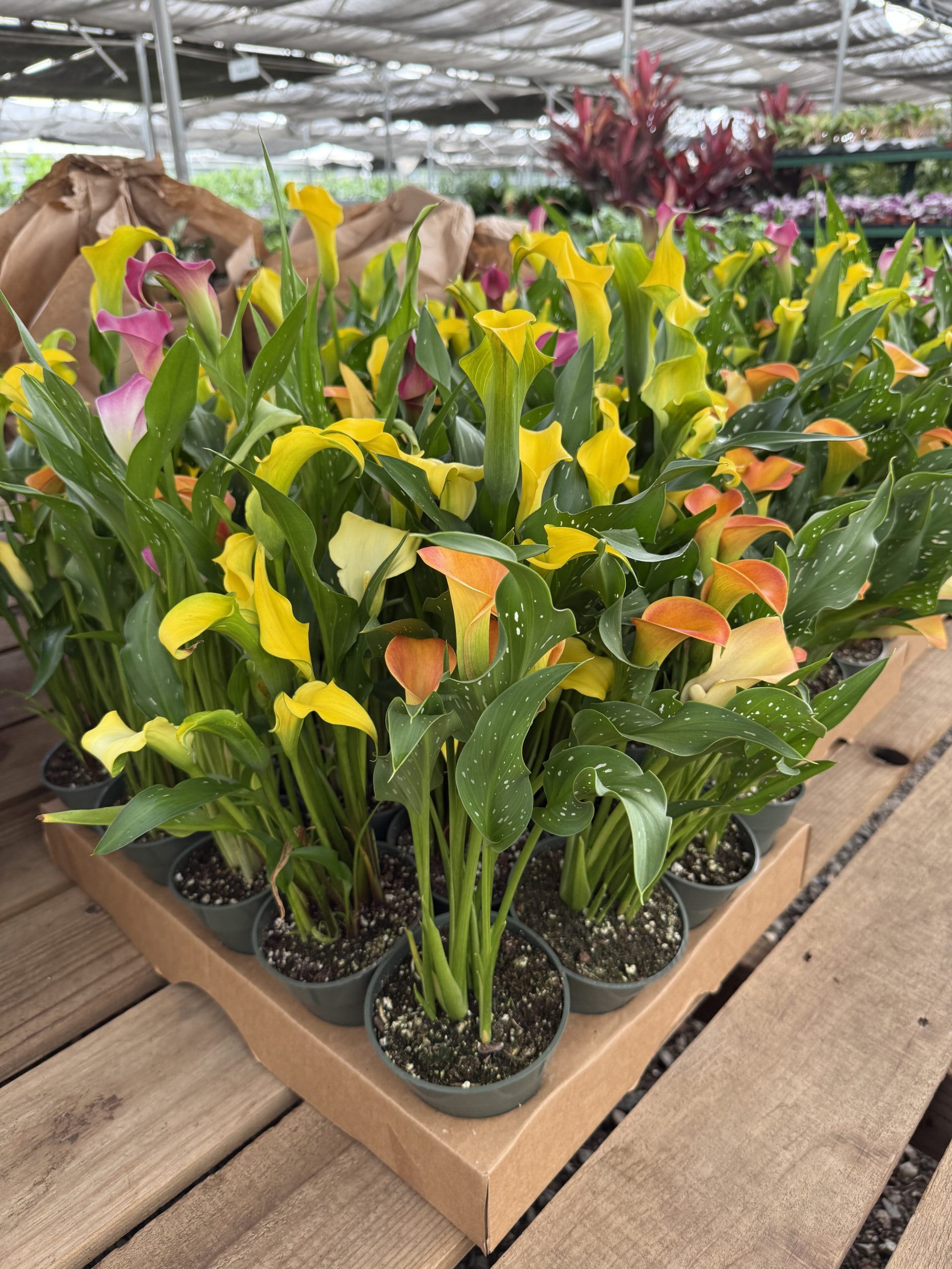 The Zantedeschia Calla Lily is a classic choice known for its graceful white blooms and glossy dark green leaves. With moderate water and bright indirect light requirements, it suits both interiorscapes and retail settings. Perfect for adding a touch of elegance to floral arrangements and standalone displays.