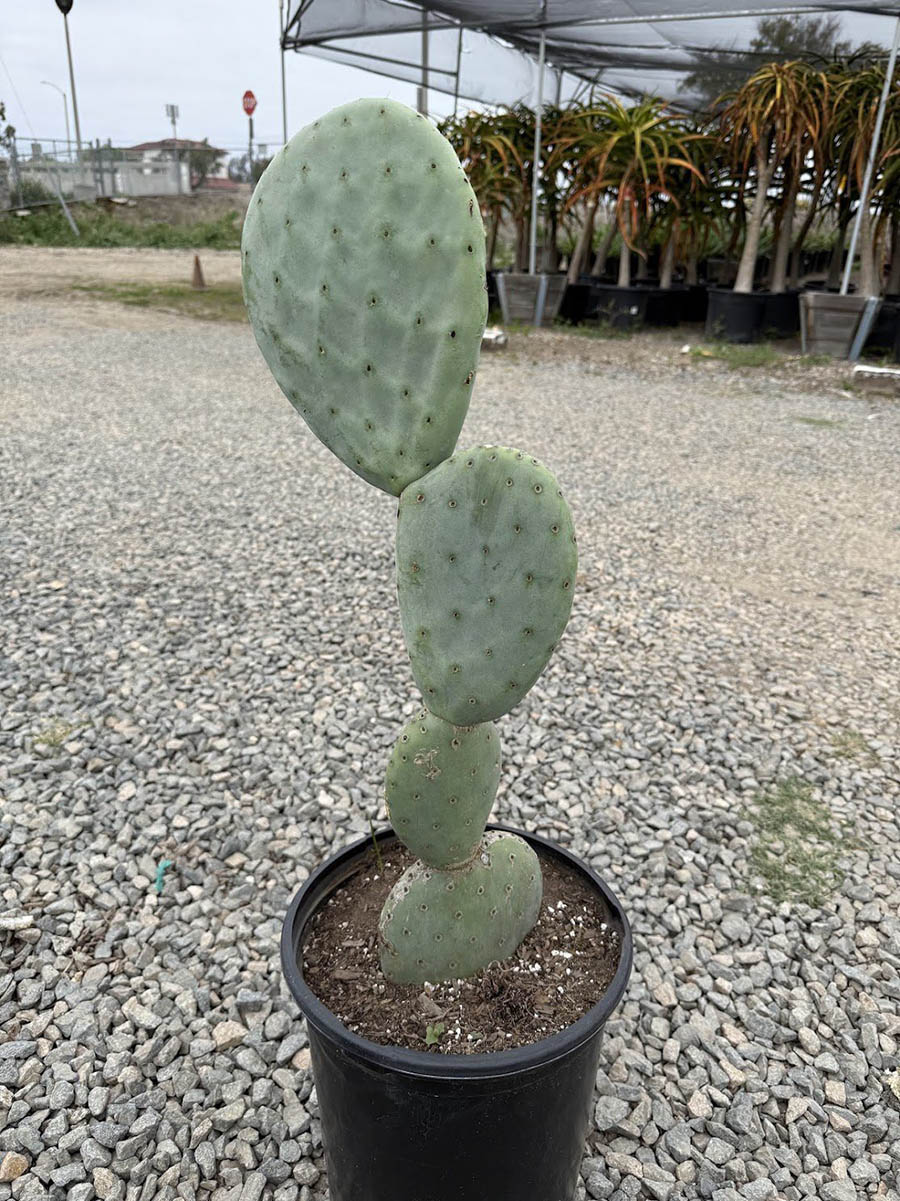 A stunning Opuntia variety featuring striking blue-gray pads with minimal spines. Suitable for xeriscapes and desert-themed retail setups due to its low water and bright light requirements. A low-maintenance choice with unique visual appeal that stands out in any display.