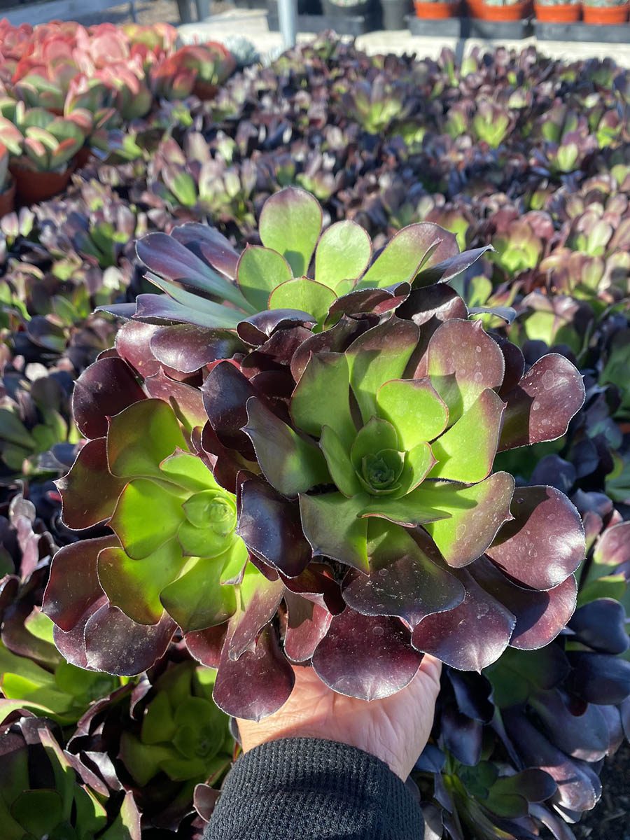 A unique addition for exterior landscapers looking to create impactful outdoor arrangements. The Aeonium Cyclops features rosettes of dark burgundy leaves with a green center, standing out against other plants. Drought-tolerant and strikingly beautiful, it requires minimal maintenance for lasting beauty. Water: 2