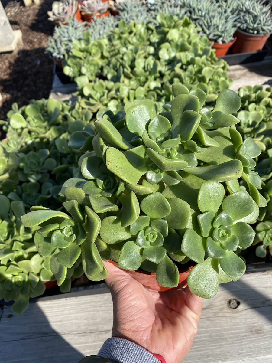 The Aeonium Lily Pad is a vibrant addition to any landscape or garden center assortment, boasting wide, lily-pad-shaped leaves in a lush array of green hues. Its robust nature, ideal for varied climates and soil conditions, ensures visual impact throughout the year. An attractive choice for creating stunning retail displays or as ground cover in exterior landscapes.