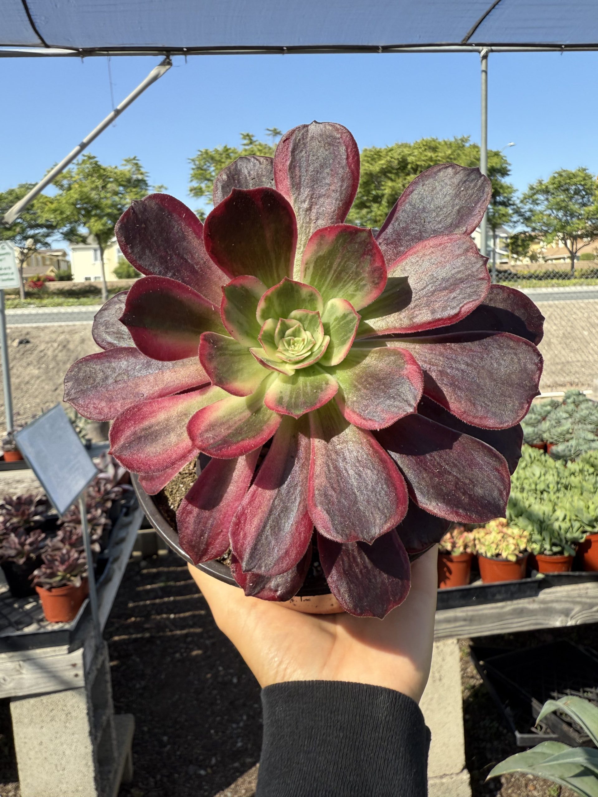 The Aeonium ‘Wedding Dress’ features rosettes with white edges, resembling delicate lace, making it an eye-catching choice for landscaping and retail aesthetics. Thriving in bright light with minimal watering needs, this succulent is perfect for creating elegant and modern displays.