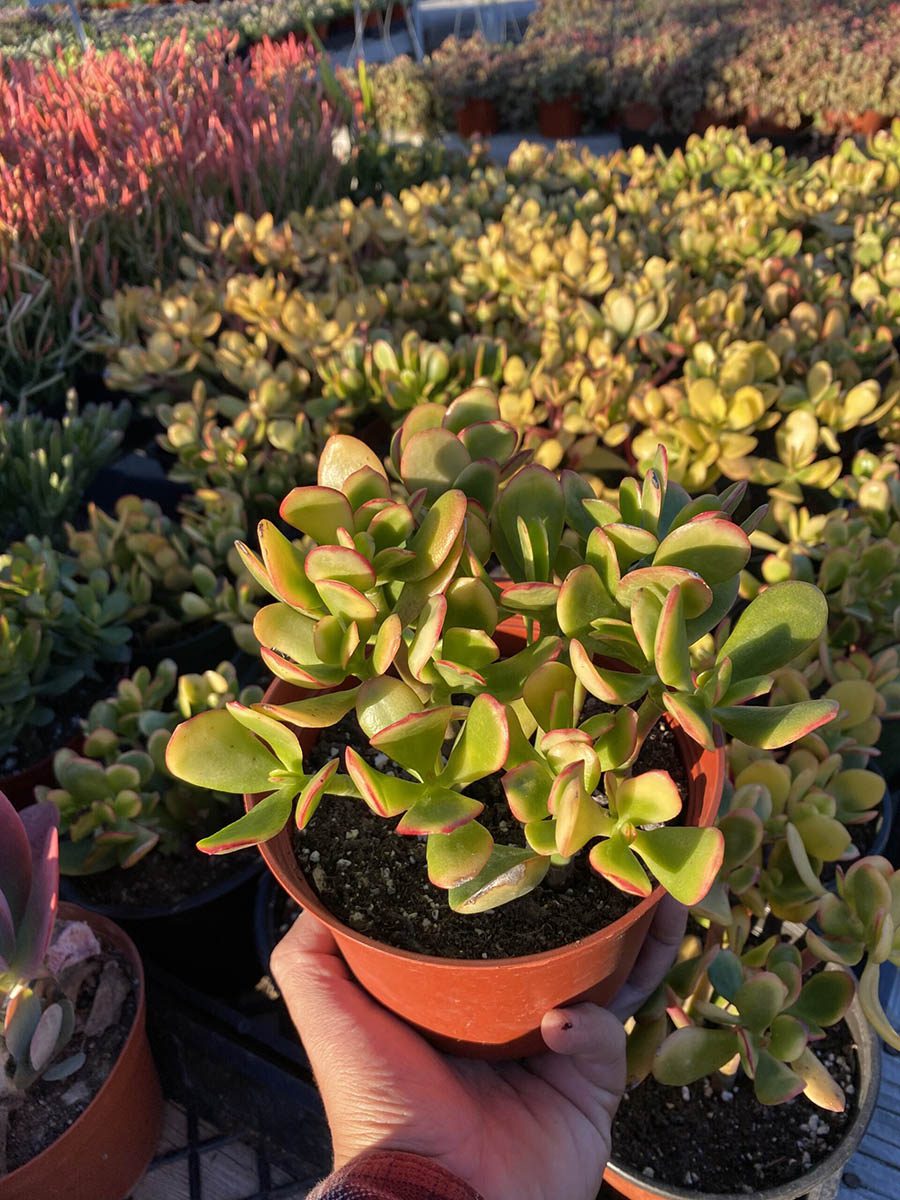 The Crassula Ovata ‘Jade Sunset’ features glossy, green leaves that turn a beautiful red hue in bright light. Its compact shape and vibrant color make it a top choice for retail displays and interiorscapes, adding a touch of elegance. Easy-care and drought-tolerant, it is perfect for beginners and enthusiasts.