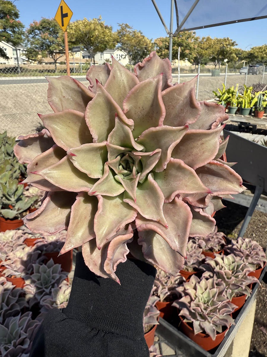 The Echeveria Mediba showcases silvery-blue rosettes with a mesmerizing powdery coating, adding a touch of sophistication to any space. Its compact form and distinctive coloring make it a versatile choice for interiorscapes and retail displays, creating a serene atmosphere. This plant requires minimal watering and thrives in bright light conditions, offering a low-maintenance option for enthusiasts seeking an elegant succulent.