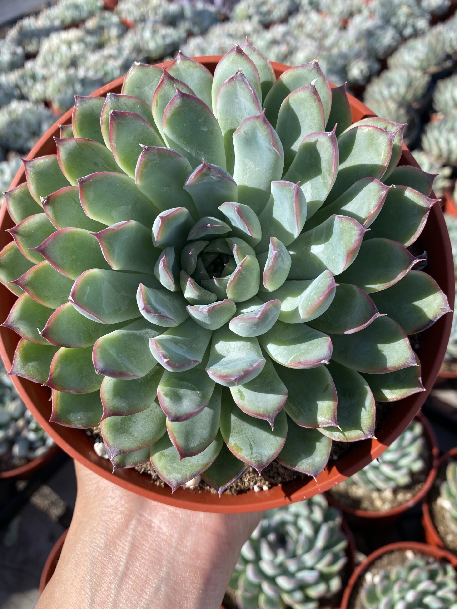 The Echeveria Pulidonis features compact rosettes of blue-green leaves with pink tips, creating a stunning contrast. Ideal for both landscapers and garden centers, this succulent thrives in sunny environments, making it perfect for outdoor arrangements or indoor plant displays. Easy-care plant suitable for beginners.