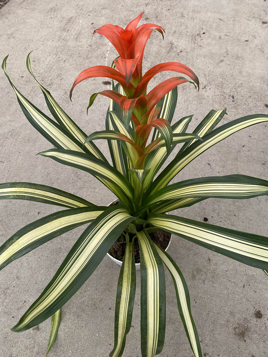 The 6″ Guzmania Georgia, with its variegated orange foliage, is a showstopper in any setting. This plant thrives in bright light and requires frequent watering, making it a standout choice for interiorscapes looking to add a burst of color. Retailers can attract attention with this trending variety, perfect for both beginners and enthusiasts.