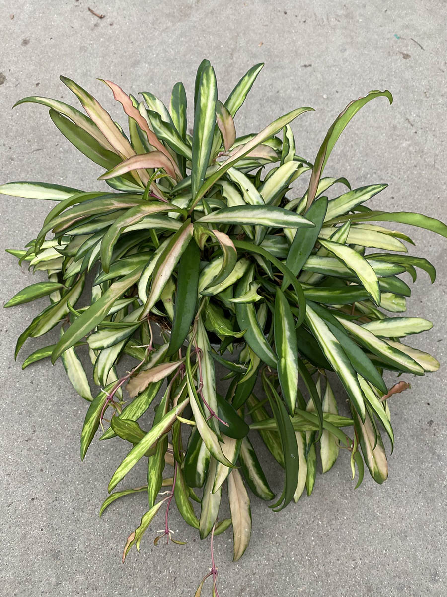 The 6″ Hoya Wayetii features variegated leaves that create a stunning aesthetic in interiorscapes and retail garden centers alike. With its eye-catching foliage and trailing growth habit, it’s perfect for hanging displays or tabletop arrangements. This plant requires moderate watering and thrives in medium light, making it suitable for beginners and enthusiasts. Its unique variegation adds a touch of elegance to any setting.