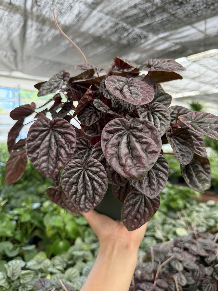 The 6″ Peperomia Red Luna is a charming plant with vibrant red undersides on its leaves, creating a visually appealing display for interiorscapes and retail garden centers. Its compact size and easy-care nature make it a versatile choice for various settings, offering a touch of whimsy to any space. Water: 2, Light: 1, General Care: 1