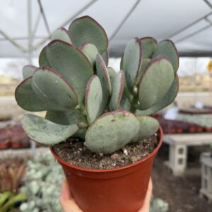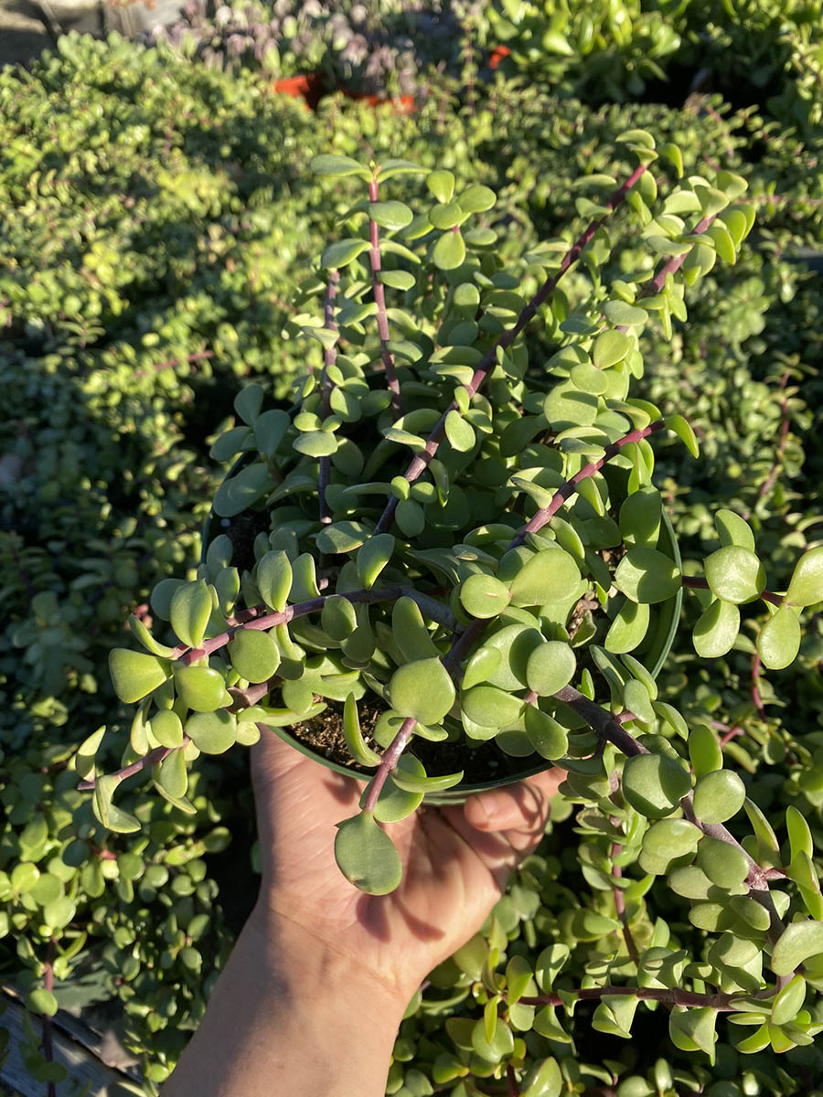 The Portulacaria Afra Minima features miniature, glossy green leaves on reddish-brown stems, creating a charming appearance perfect for interiorscapes and retail displays. This plant is easy to care for, requiring minimal water and low to medium light levels. Ideal for adding a touch of green to small spaces.