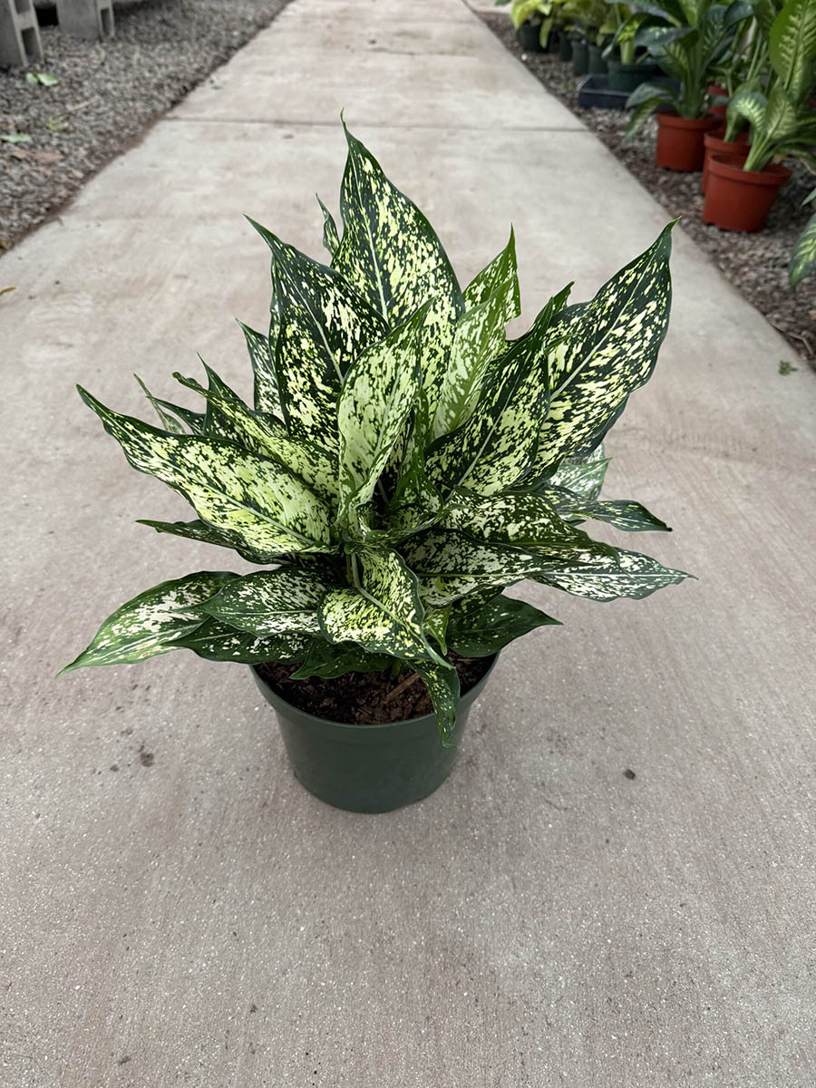 The Chinese Evergreen ‘Snow White’ is a stunning plant with lush green leaves featuring delicate white markings, adding a touch of elegance to any space. Perfect for interiorscapes, it thrives in varying light conditions and requires minimal watering, making it a low-maintenance choice. Ideal for retail displays, attracting customers with its vibrant foliage.