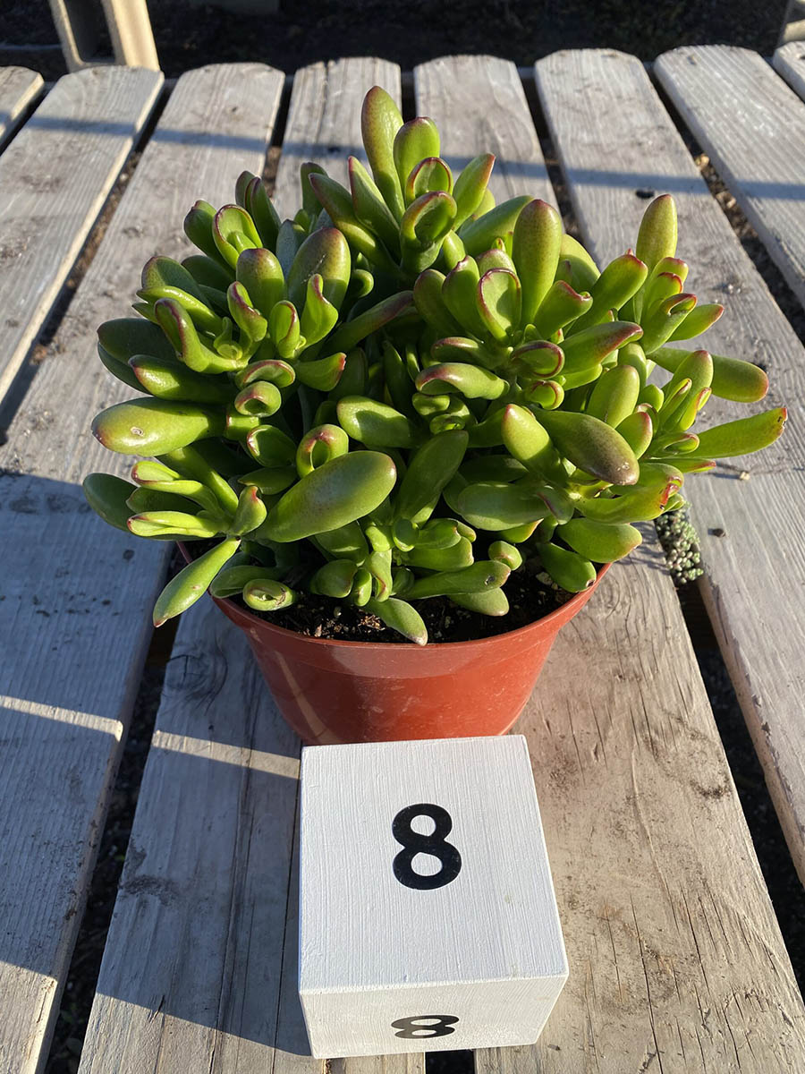 The Crassula Jade Hobbit is a unique succulent with tubular, curled green leaves resembling hobbit toes, adding a whimsical and distinctive touch to interiorscapes and retail shelves. This plant thrives with moderate watering and bright to medium light, offering a playful addition to succulent collections and modern displays. Easy to care for and propagate, it suits various design styles and attracts customers seeking unusual greenery.