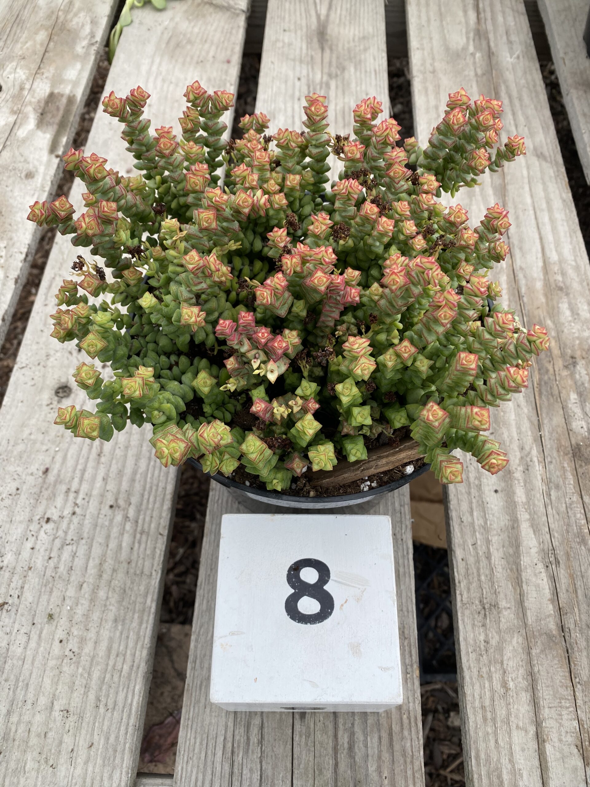 The 8″ Crassula Tom Thumb features compact clusters of vibrant green, fleshy leaves. This succulent is perfect for both exterior landscapes and retail garden centers, adding color and texture to any setting. With minimal water requirements and low light needs, it is easy to care for, making it ideal for beginners.