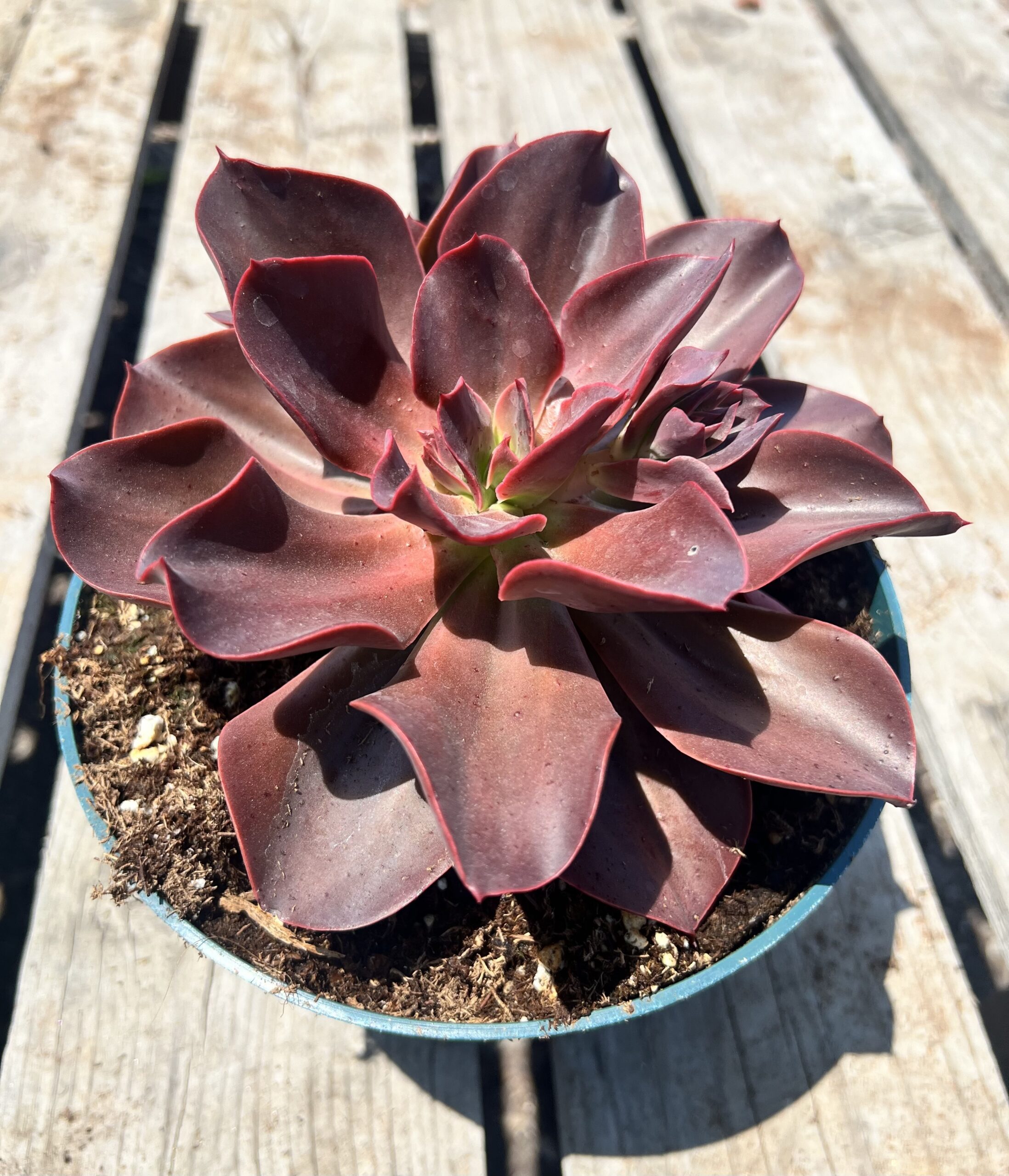 The 8″ Echeveria Red Baron features striking rosettes of red-maroon leaves, adding a bold pop of color to any landscape. Perfect for retail displays to attract customers, this plant is easy to care for and thrives in bright light environments. Water: 2, Light: 3, General Care: 1