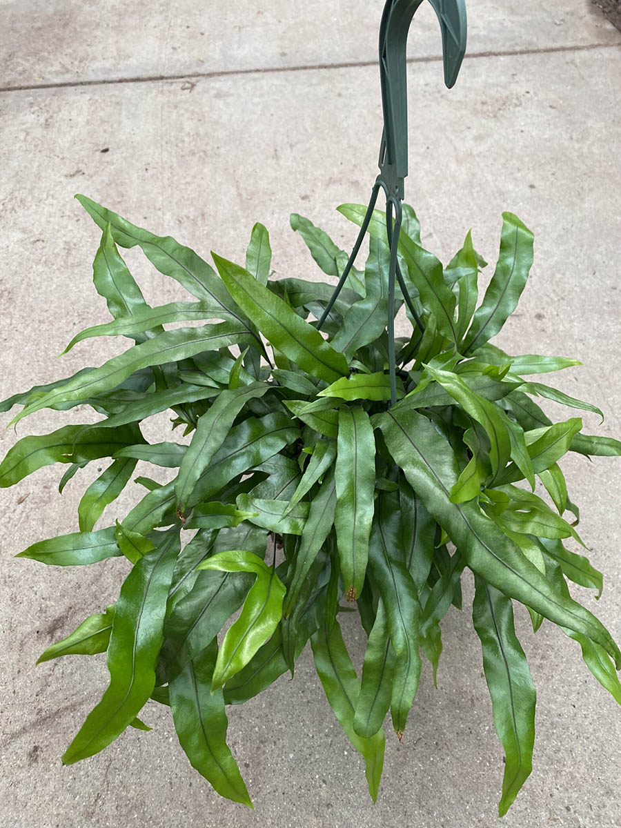 The 8″ Kangaroo Paw Fern is a showstopper with its vibrant green fronds resembling kangaroo paws. This easy-care plant excels in frequent watering and thrives in medium light, making it a perfect choice for interiorscapes requiring a lush, tropical touch. Its cascading nature also makes it a popular choice for retail displays seeking to create a jungle ambiance.
