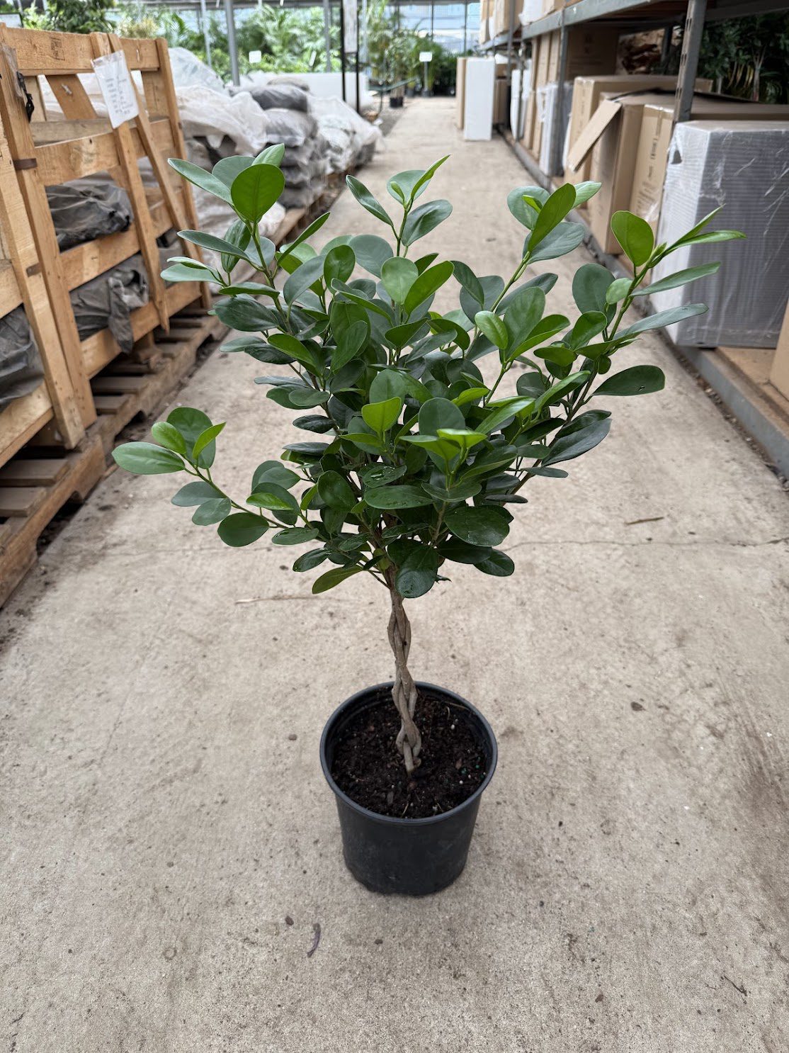 The Ficus ‘Moclame’ impresses with its braided trunk and dense, dark green foliage, adding a touch of elegance to interiorscapes. Its hardy nature makes it ideal for both interiorscape companies and retail garden centers looking for a statement piece. Water: 2, Light: 2, General Care: 1