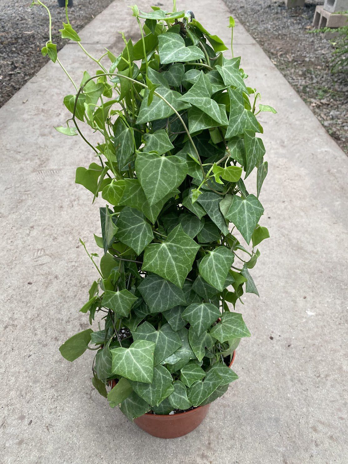 Cascading and vibrant, the 8″ Ivy ‘Wax Green’ features glossy, deep green leaves perfect for hanging displays or as a ground cover. With excellent durability and low maintenance needs, this ivy thrives in moderate light and infrequent watering, making it a versatile choice for interiorscapes and retail setups. Ideal for adding a touch of nature to any setting.