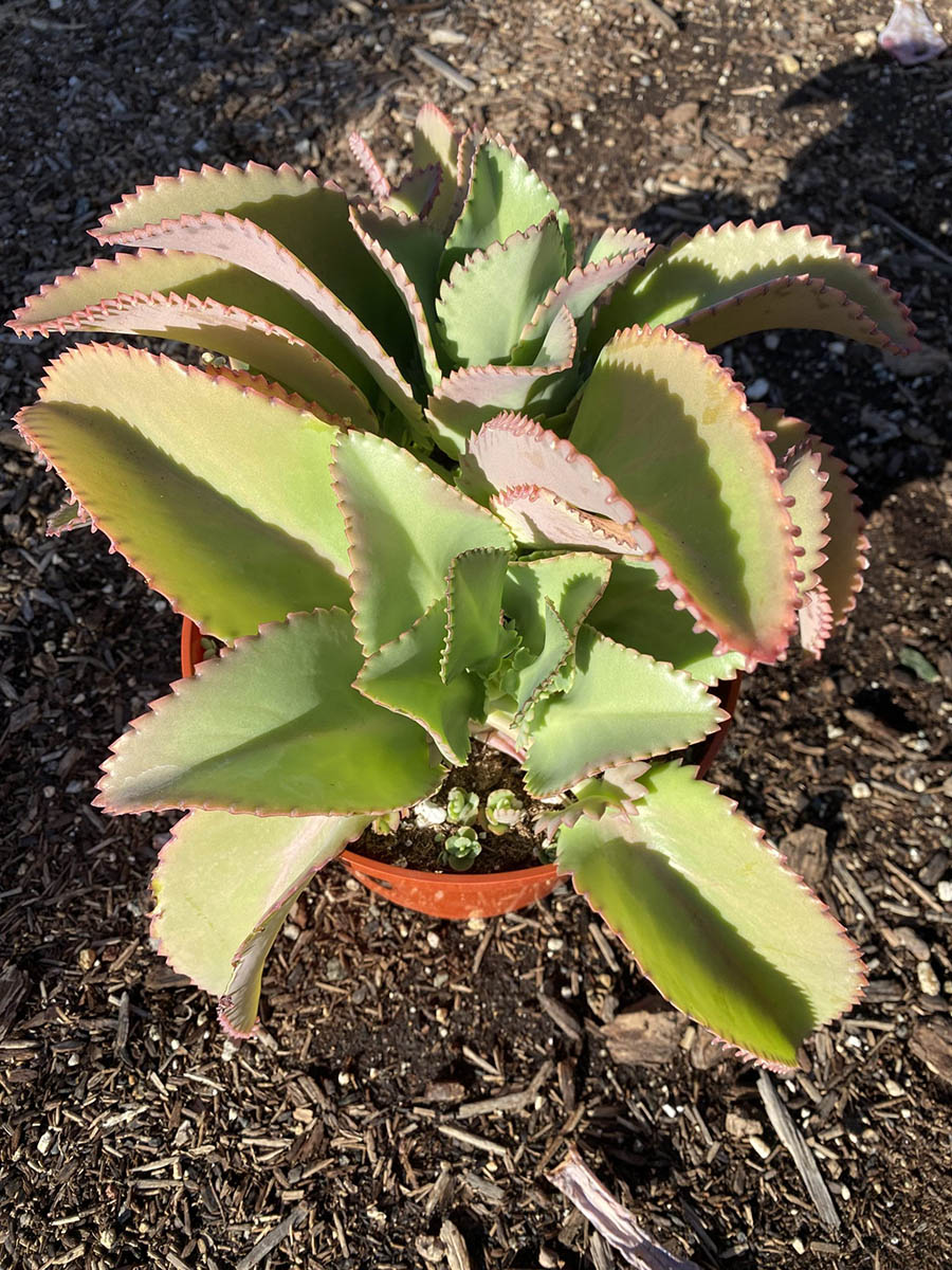 The Kalanchoe Mother of Thousands is a showstopper with its cluster of baby plantlets along the leaf margins, creating a captivating visual display. Suitable for indoor interiorscapes and retail setups, this succulent prefers infrequent watering and bright light. Perfect for adding a touch of natural beauty to any space.