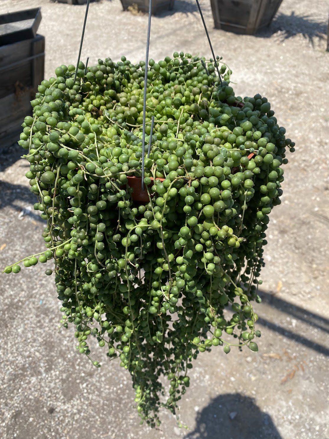 This 8″ Senecio Rowleyanus “String of Pearls” features trailing stems packed with distinctive spherical leaves resembling pearls, adding a whimsical touch to any display. Ideal for both exterior landscapers and retail garden centers, it thrives indoors or outdoors with minimal care and is a conversation starter. Perfect for hanging baskets or cascading displays.