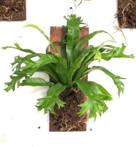 The Birdsnest Crissie Fern in a 6″ x 16″ plaque offers a unique way to introduce greenery into interiorscapes and retail settings. With its lush, dense foliage and cascading growth habit, this fern is perfect for adding a natural touch to vertical displays or hanging arrangements. Thriving in bright, indirect light, this fern is easy to care for, making it a popular choice for plant enthusiasts of all levels.