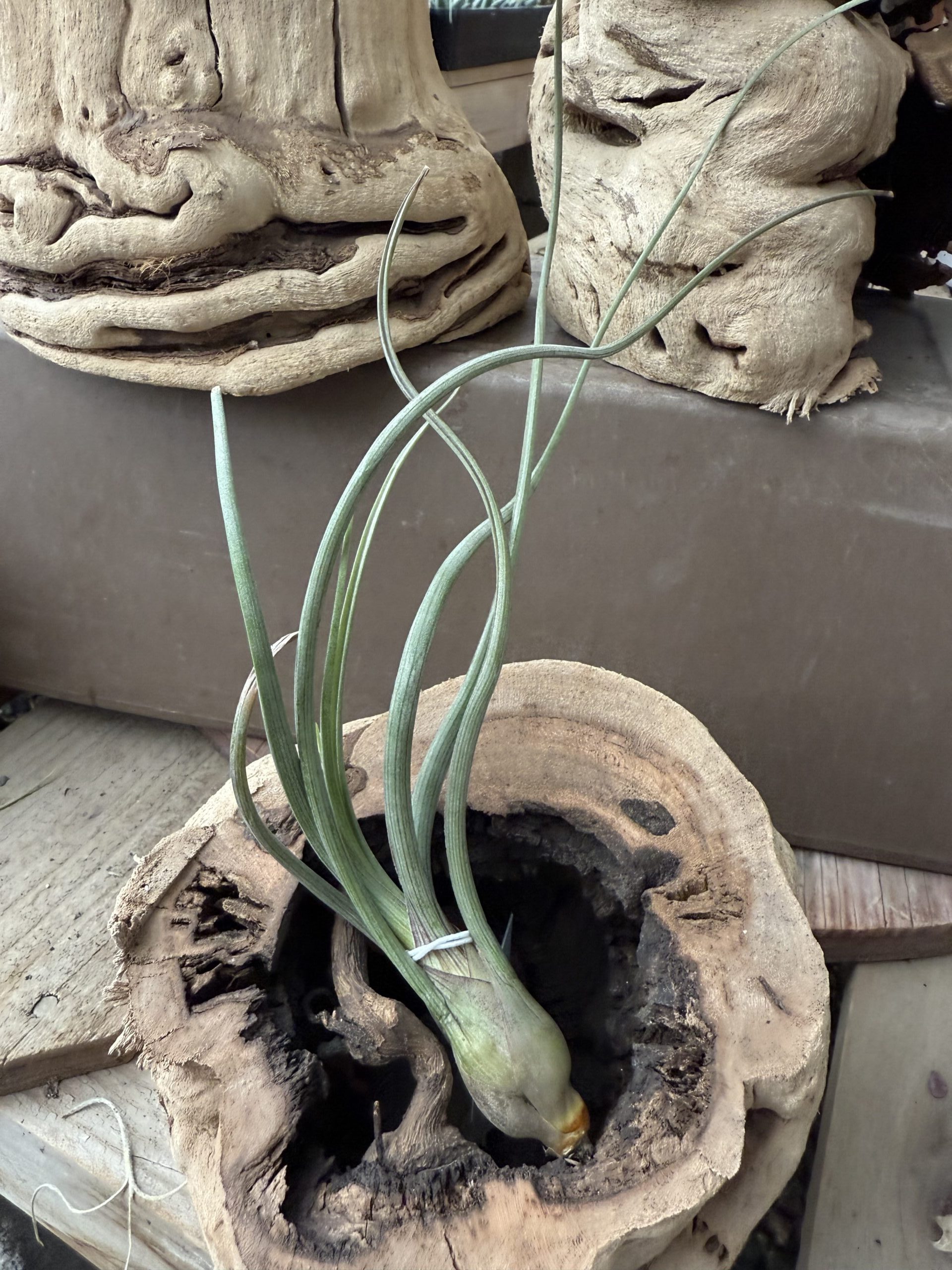 Tillandsia Baileyii is an air plant with slender, silvery-green leaves that form a rosette shape. This low-maintenance plant is perfect for hanging displays, terrariums, and modern retail setups. Water by misting and place in bright, indirect light. Easy-care and ideal for beginners seeking unique plant varieties.