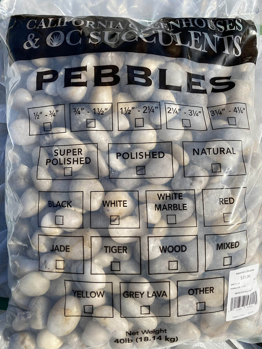 White (40lb) Polished Pebbles 3/4 – 1 1/2″